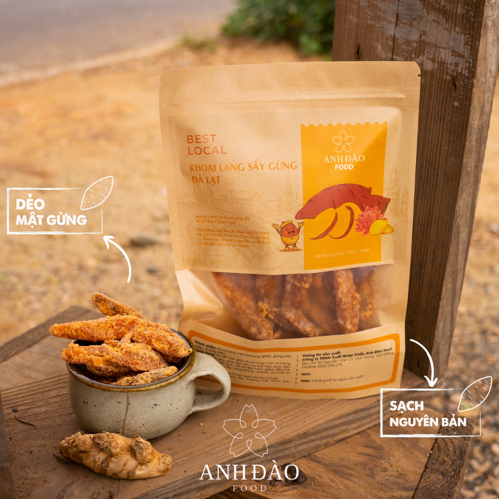 Khoai lang mật sấy gừng dẻo là món đặc sản trứ danh từ vùng đất Tà Nung, Lâm Đồng. Bằng phương pháp sấy chân không hiện đại, từng lát khoai vẫn giữ trọn được độ mềm dẻo, vị bùi thơm và mật ngọt tự nhiên, quyện cùng hương gừng già ấm nồng.