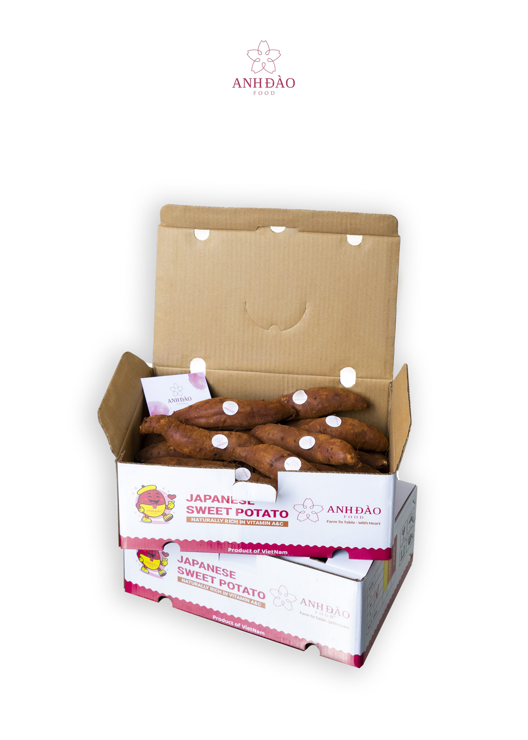 Từ những ruộng khoai trên cao nguyên Lâm Đồng, Anh Đào Food mang đến dòng sản phẩm khoai lang Nhật chuẩn xuất khẩu quốc tế – củ đồng đều, ruột vàng óng, ngọt dẻo tự nhiên. Mỗi thùng khoai không chỉ là nông sản sạch mà còn là món quà sức khỏe, sang trọng và tinh tế.
